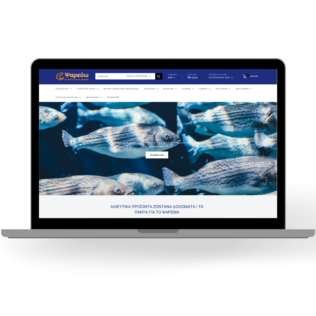 Ο πελάτης Σπύρος Θ. επέλεξε την Etroweb για την υλοποίηση του Mega Store του με αλιευτικά είδη. Ο χρήστης μπορεί εύκολα να βρει το προϊόν που αναζητά ανά κατηγορία.
