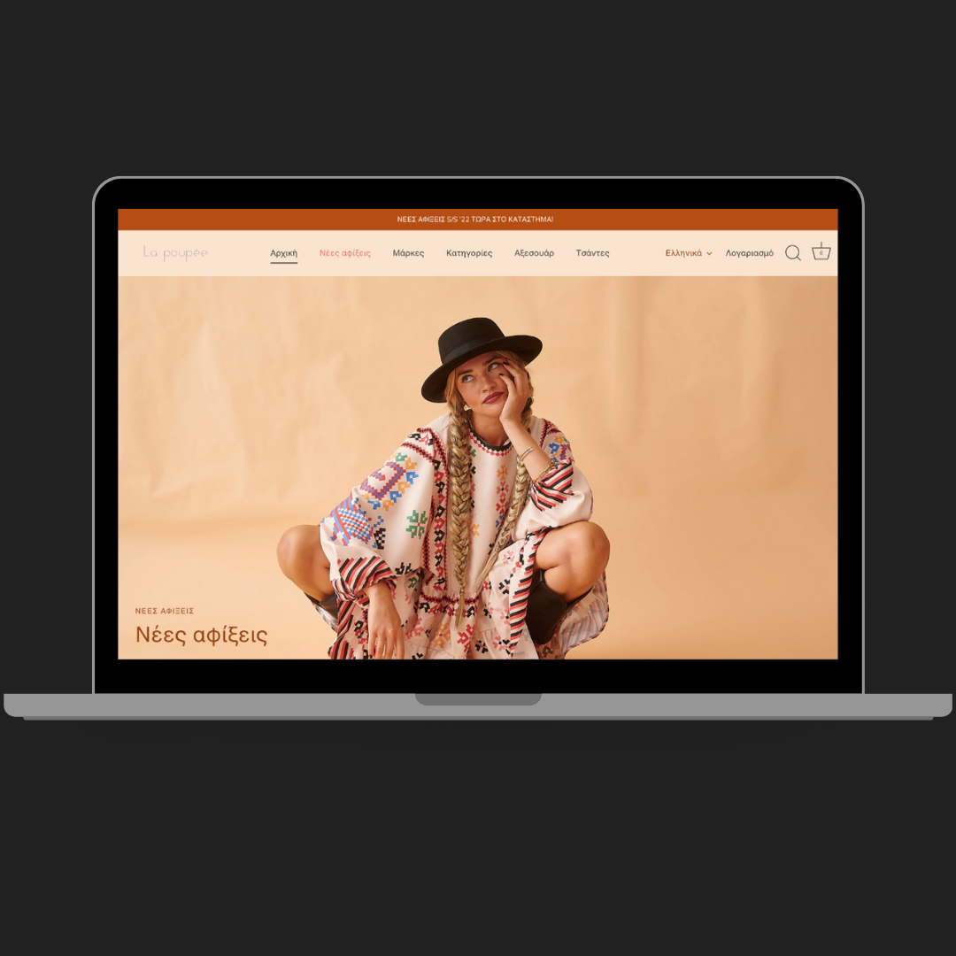 Το Lapoupee, εταιρεία που επιλέγει μόνο Έλληνες σχεδιαστές για τα καταστήματά της επιθυμούσε ένα "ζεστό" και παράλληλα minimal e-shop που θα φιλοξενούσε όλα τα Brand και θα ήταν φιλικό προς τον χρήστη. Οι designer μας, ταίριαξαν τα χρώματα του website με τα καταστήματα της εταιρείας.