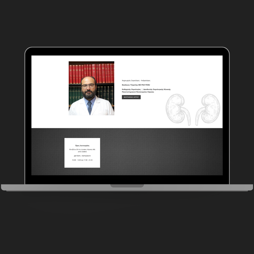 Ο Βασίλειος Τζώρτζης MD PhD FEBU είναι καθηγητής Ουρολογίας και Διευθυντής Ουρολογικής Κλινικής Πανεπιστημιακού Νοσοκομείου Λάρισας. Για την ενίσχυση του ιατρικού του έργου, δημιουργήσαμε μια απλή ιστοσελίδα με τις υπηρεσίες που προσφέρει ο ιατρός και πληροφορίες για το ιατρείο του.