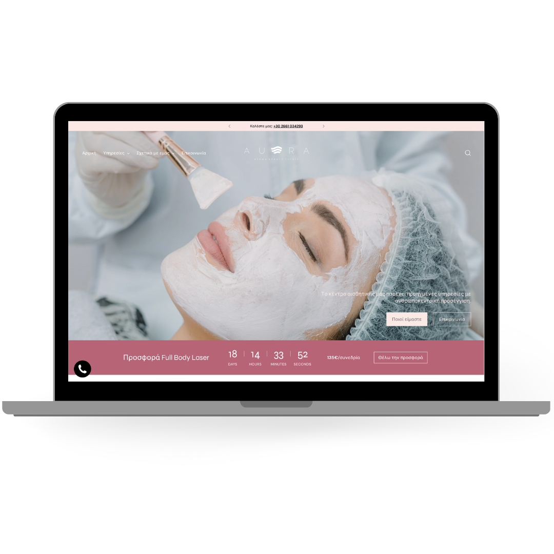 Η κλινική Aura μας εμπιστεύτηκε για τη δημιουργία της εταιρικής της παρουσίας. Στόχος μας, η παρουσίαση όλων των υπηρεσιών της σε minimal σχεδιασμό και custom design.